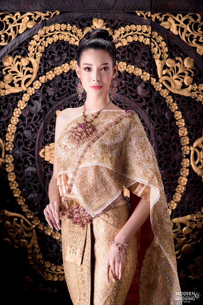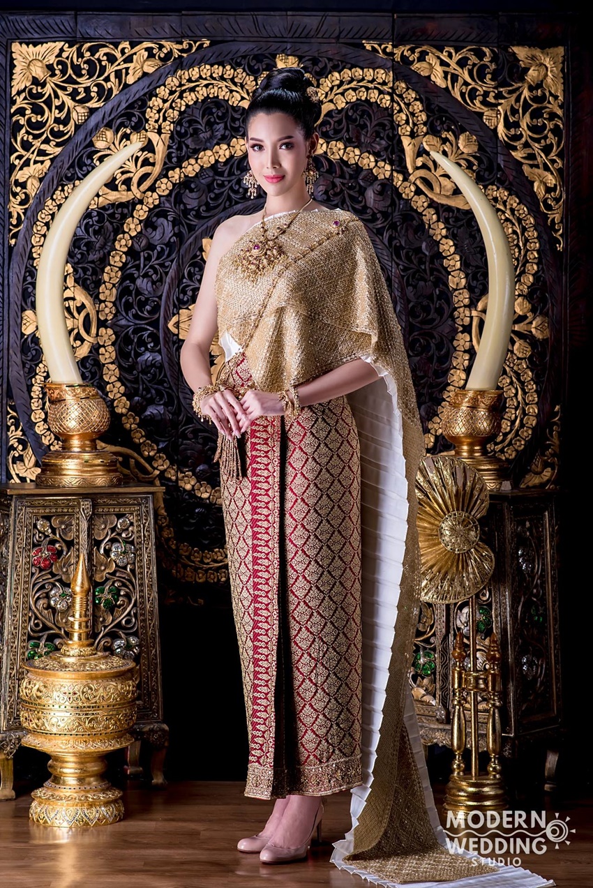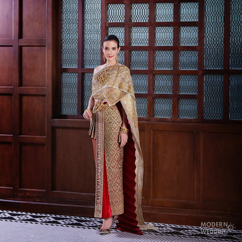 แบบชุดไทย แบบชุดไทย ชุดไทยประยุกต์ ชุดไทยแต่งงาน สีทอง