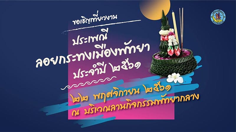 ขอเชิญเที่ยวงานประเพณีลอยกระทงเมืองพัทยา ประจำปี 2561