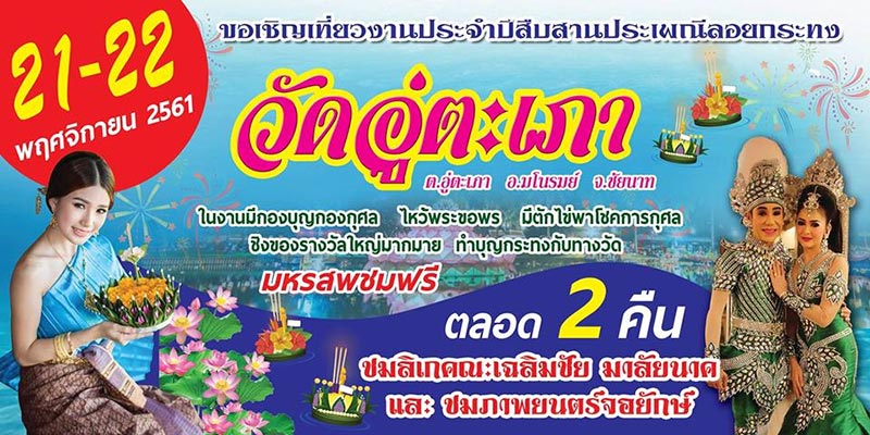 ขอเชิญเที่ยวงานประจำปีสืบสานประเพณีลอยกระทง วัดอู่ตะเภา จังหวัดชัยนาท ประจำปี 2561
