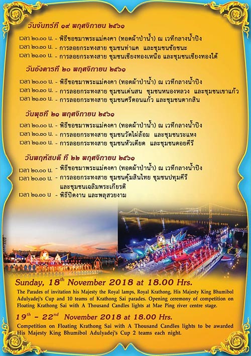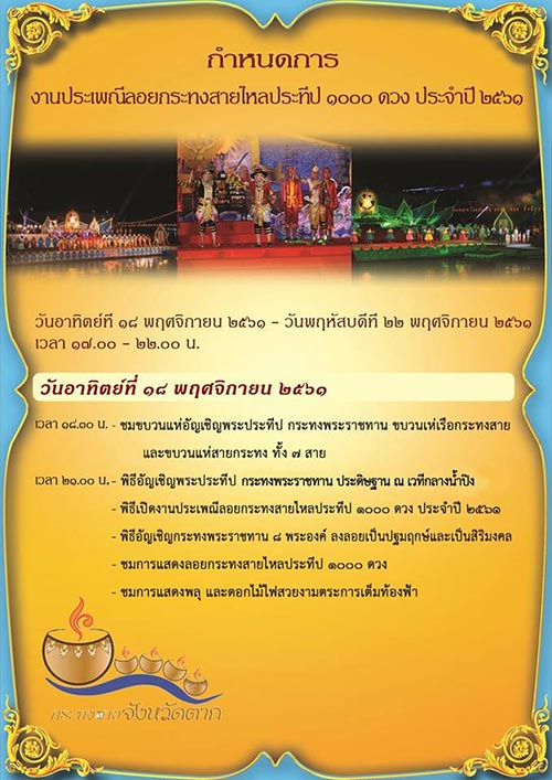 - วันที่ 22 พฤศจิกายน 2561 พิธีเปิดงานลอยกระทง