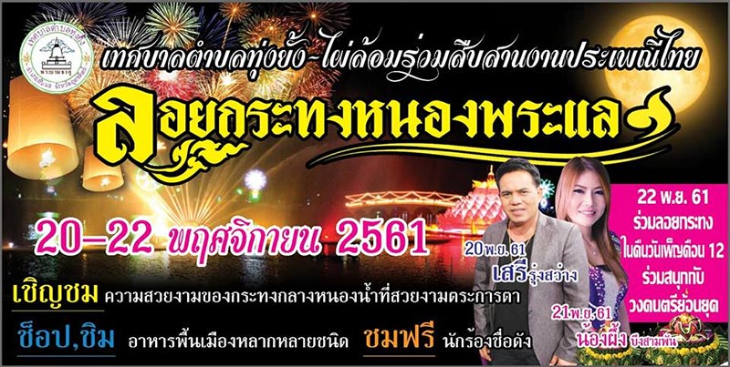 ขอเชิญเที่ยวงานประเพณีไทยและเที่ยวงานประเพณีลอยกระทง หนองพระแล ประจำปี 2561
