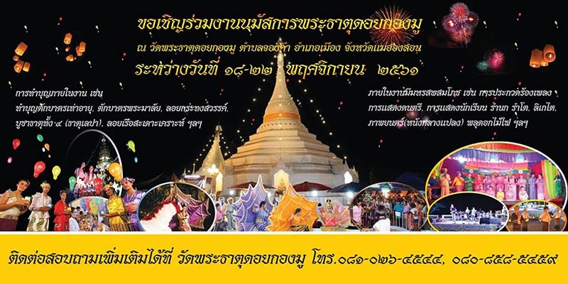 ขอเชิญเที่ยวงานนมัสการพระธาตุดอยกองมู (ลอยกระทงสวรรค์) ประจำปี 2561