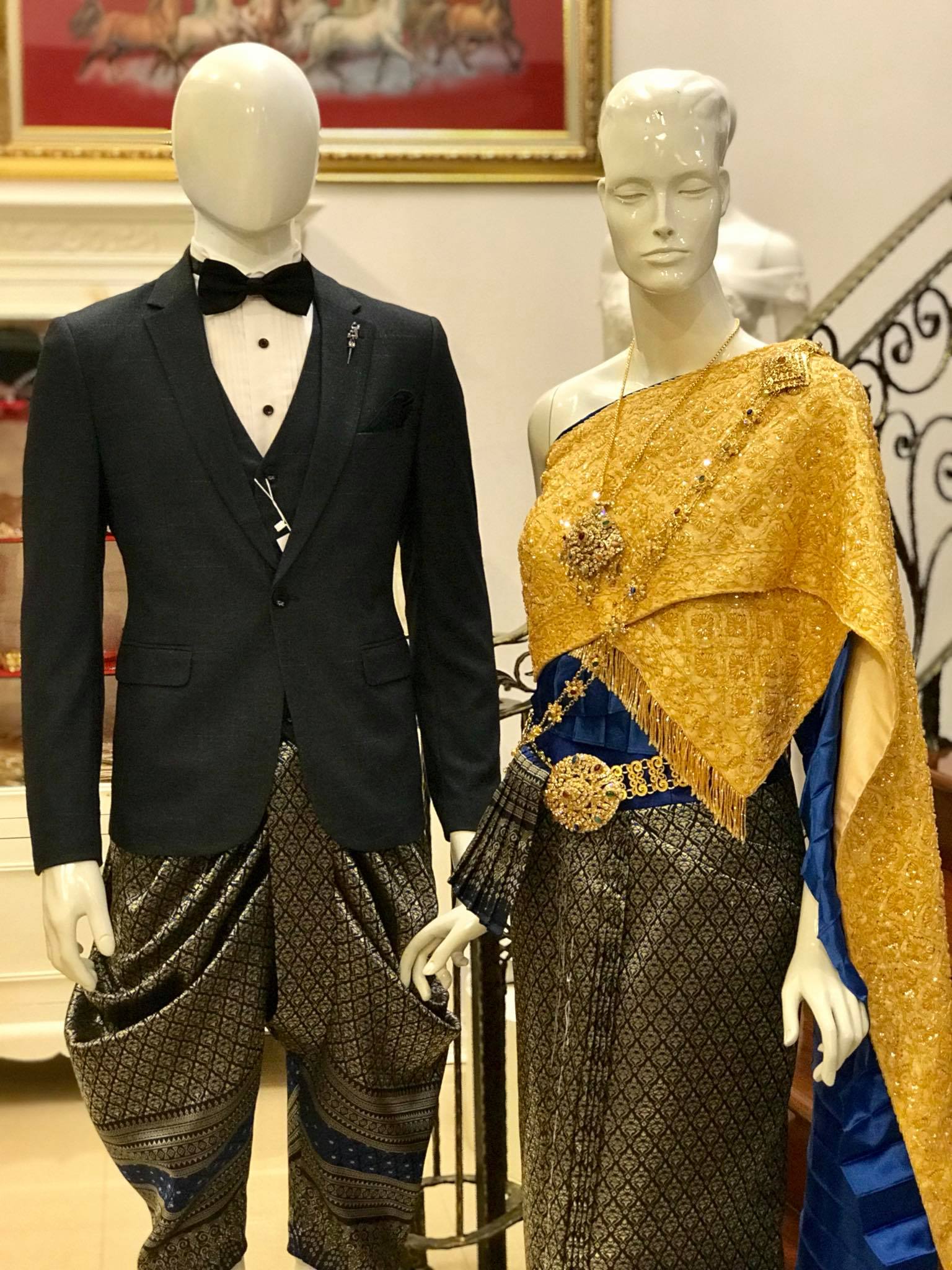 ชุดไทย สีน้ำเงิน ทอง