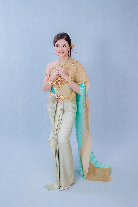 ชุดไทย สีเขียว ทอง
