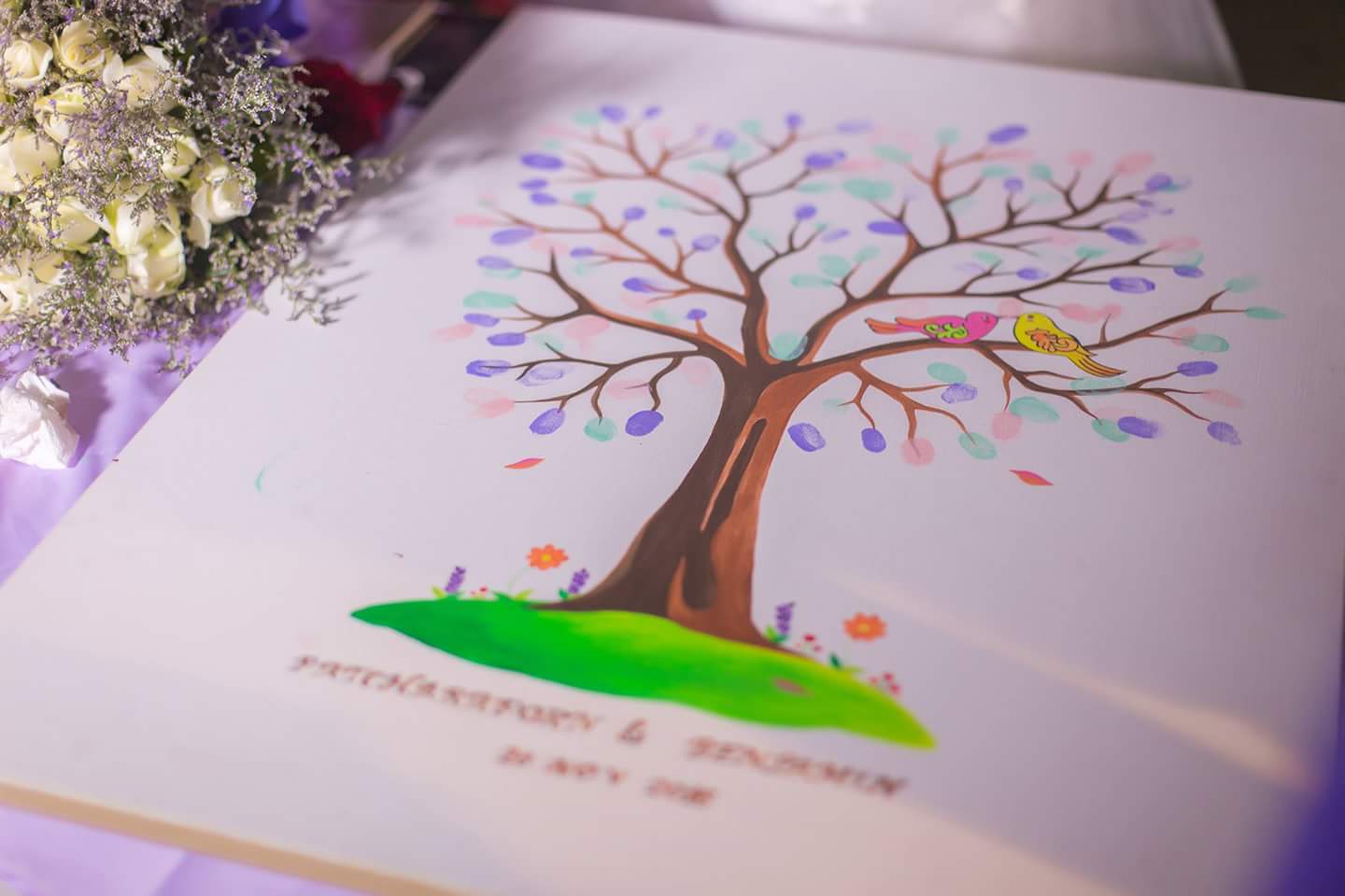 4. เราสั่งทำภาพวาด ไว้สำหรับให้แขกที่มางาน พิมพ์รอยนิ้วมือ สมุดอวยพรเก๋ๆเป็นต้นไม้พยานรักค่ะ เอาไว้ใส่กรอบเก็บไว้เป็นที่ระลึกค่ะ