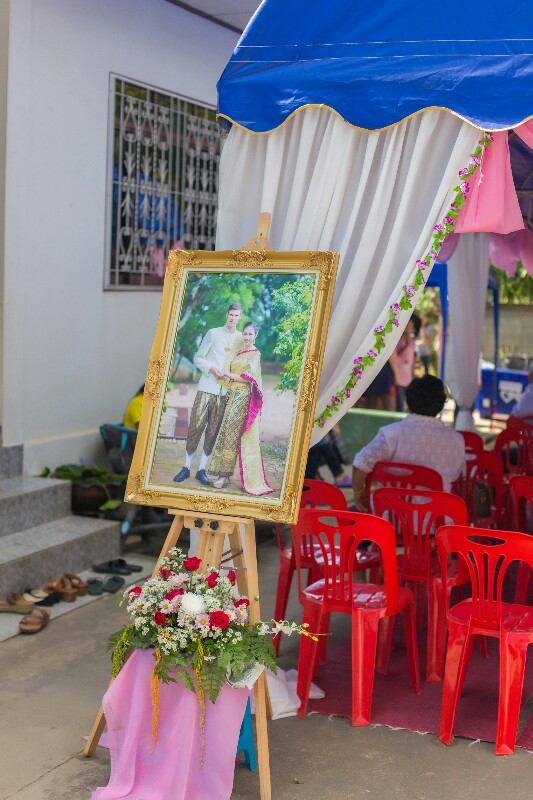 5. ตัวหนังสือ เราจ้างช่างแถวบ้านเขียนค่ะ 500 บาท ทั้งติดฉากถ่ายรูปและฉากผูกข้อมือ