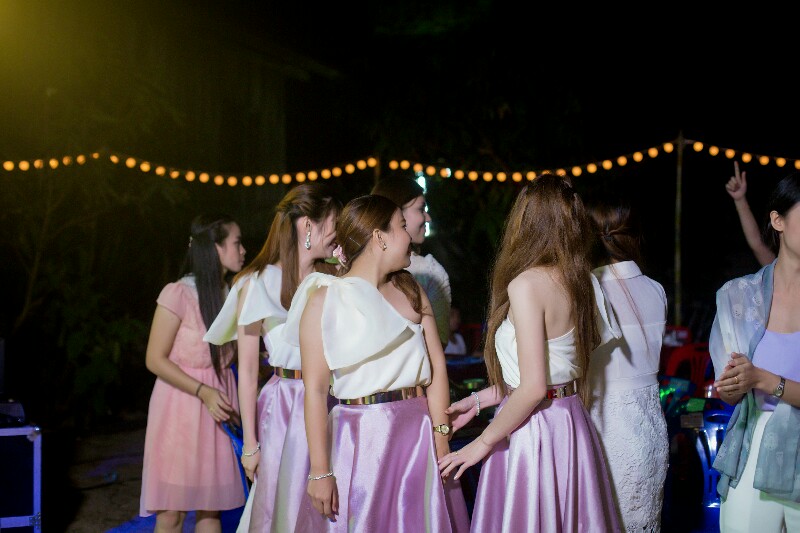4. เราตกแต่งงานเลี้ยงช่วงเย็นด้วยไฟLedกระพริบ และไฟกลมดวงเล็ก ซื้อจาก จตุจักรค่ะ แพ็คละ 100บาท ยาว 3 เมตร ตกแต่งรอบงาน โดยใช้ไม้ไผ่ เป็นเสา และเชือกป่าน เป็นแนวพันด้วยหลอดไฟค่ะ บรรยากาศสลัวๆ เหมาะกับปาร์ตี้กลางคืนค่ะ