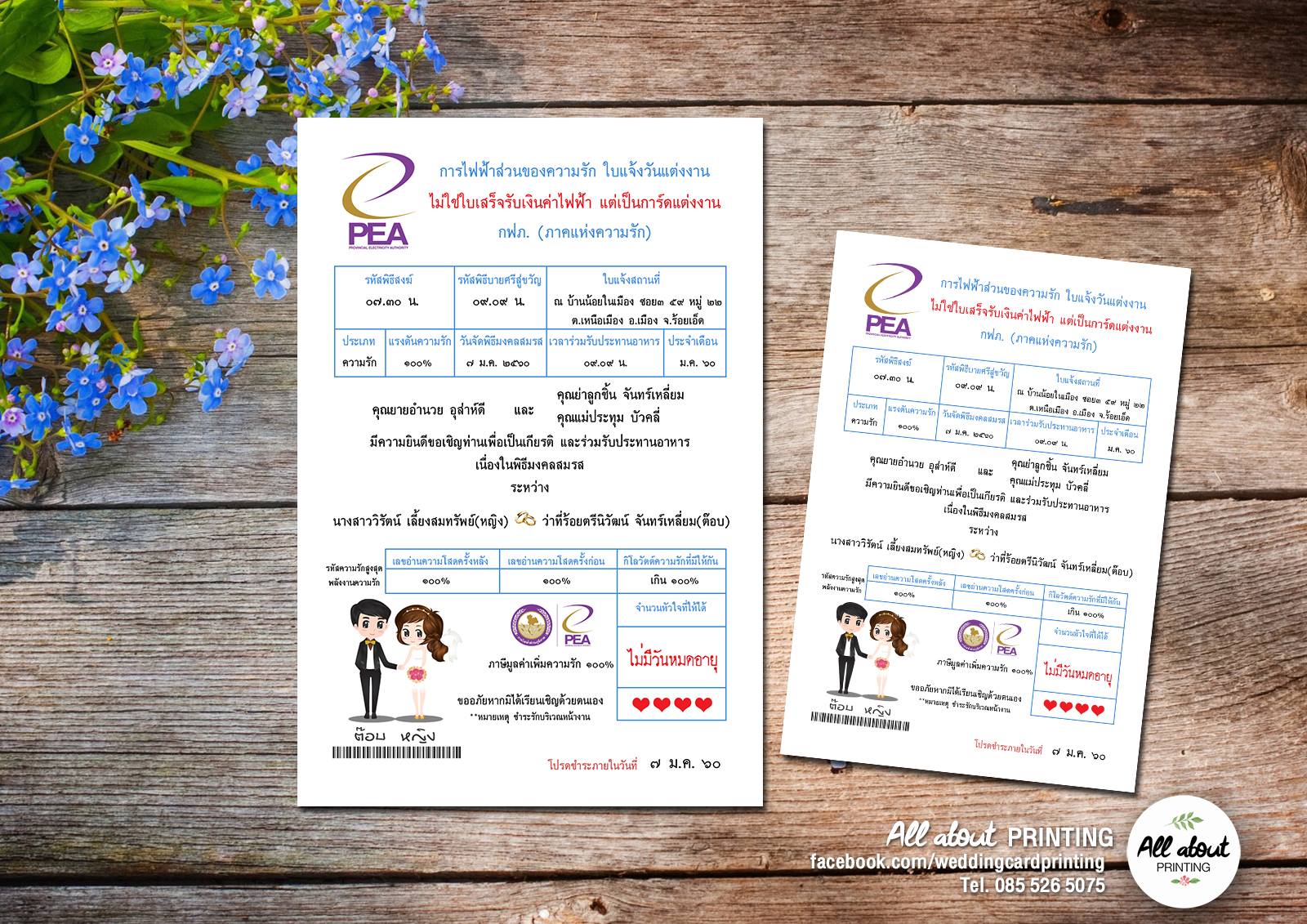 การ์ดแต่งงาน บิลค่าไฟ ของการไฟฟ้านครหลวง