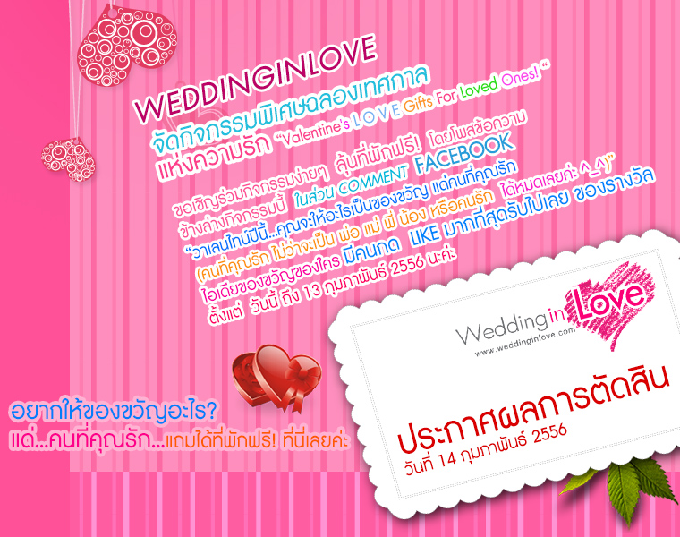 ต้อนรับวันแห่งความรัก 14 กุมภา วันวาเลนไทน์ ด้วยกิจกรรมดีๆ จาก weddinginlove