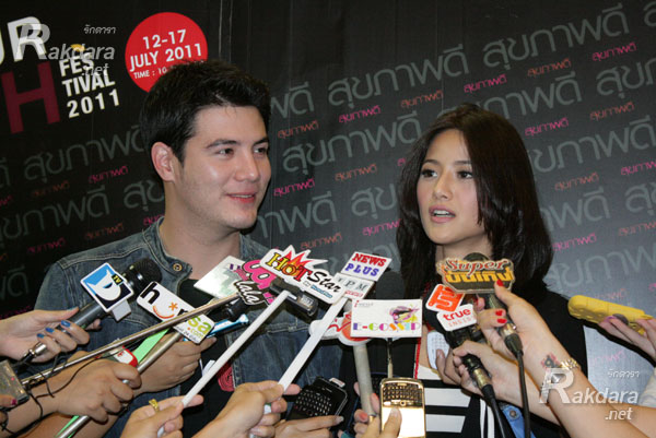 น้ำฝน : “ไม่ค่อยได้เจอ เพราะว่าเดือนที่แล้วที่ต้องออกบูธนิตยสารตามโรงพยาบาล ฟานก็ต้องถ่ายละคร “ฉันรักเธอนะ” กับ “ปู ไปรยา” เขาก็เลยไม่ได้ไป”