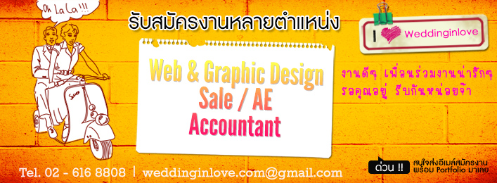 Weddinginlove รับสมัครงาน หลายตำแหน่ง สนใจรีบส่งใบสมัคร + Portfolio มาได้เลยๆ