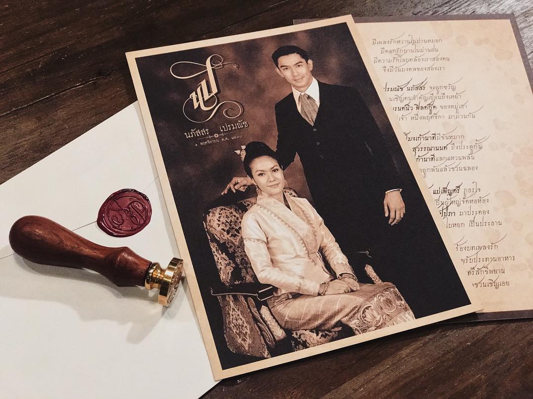 เป็นที่จับตาสุดๆ สำหรับงานแต่งของคู่รัก “เป๊ก เปรมณัช สุวรรณานนท์” และ “นิว นภัสสร ภูธรใจ” โดยล่าสุดก็มีการเผยภาพการ์ดแต่งงานออกมาให้ชมแล้ว ซึ่งตัวการ์ดนั้นจัดทำออกมาเป็นภาพแนวย้อนยุค แถมกำหนดการต่างๆ ยังเขียนเป็นกลอนอีกต่างหาก บอกเลยว่าเก๋ไก๋สุดๆ จะเป็นยังไงไปชมกันเลย